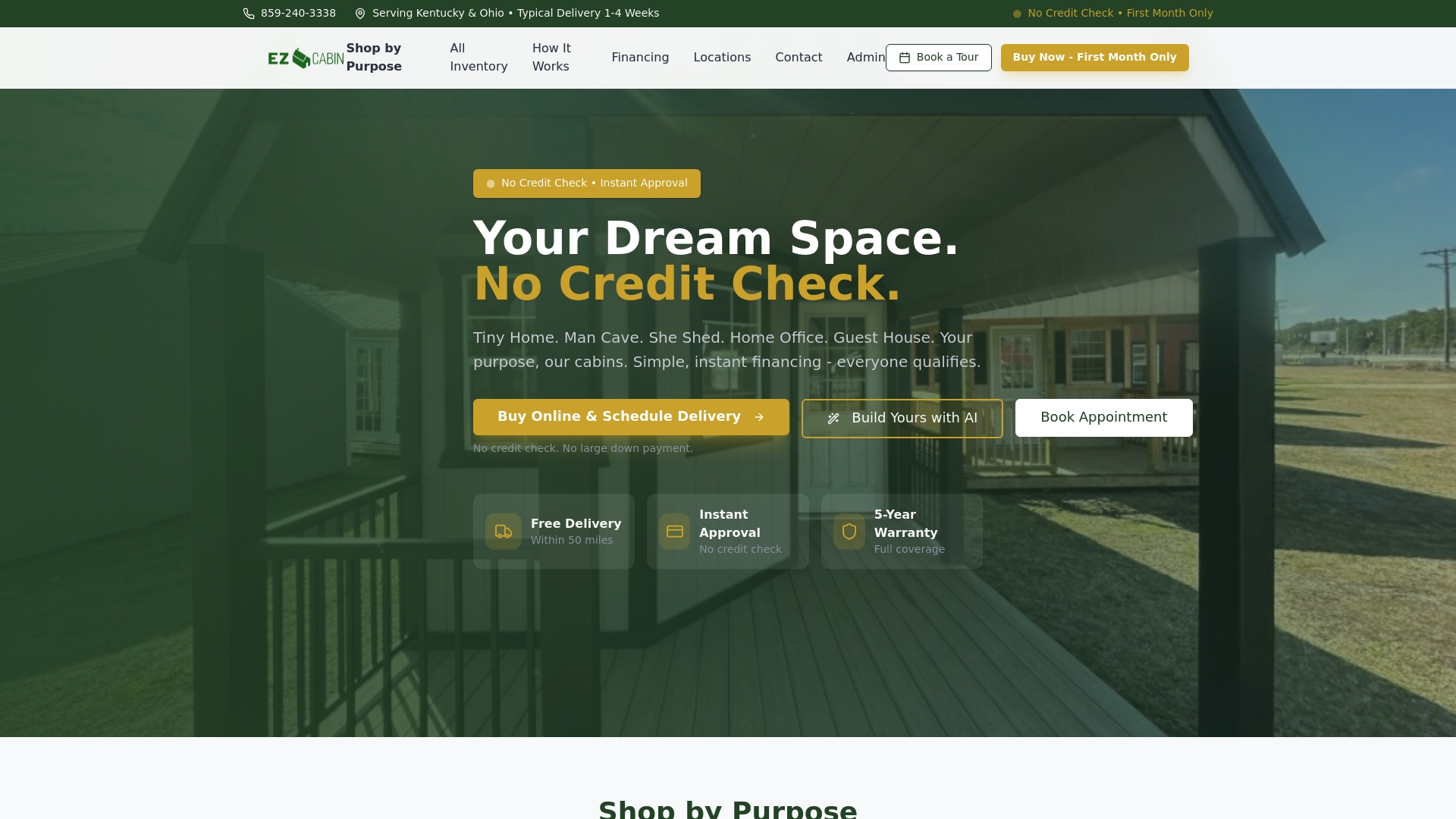 Take control of your garage space today by exploring EZ-Cabin’s AI-powered customization tools that let you visualize and tailor your building in real time. Enjoy guaranteed financing approval with no credit check and just the first month’s payment needed to get started. Whether you order online or visit our Kentucky locations, you can complete the entire process smoothly at EZ-Cabin. Transform your property quickly without the hassle of permits or extended construction timelines. Act now to secure your portable garage and reclaim your space with easy financing options available instantly on our website.
