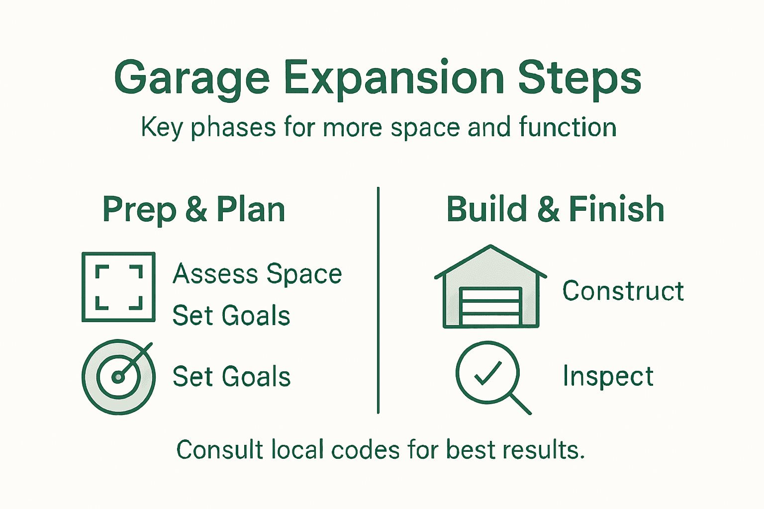 Below is a summary of key garage addition construction phases and what inspections focus on: