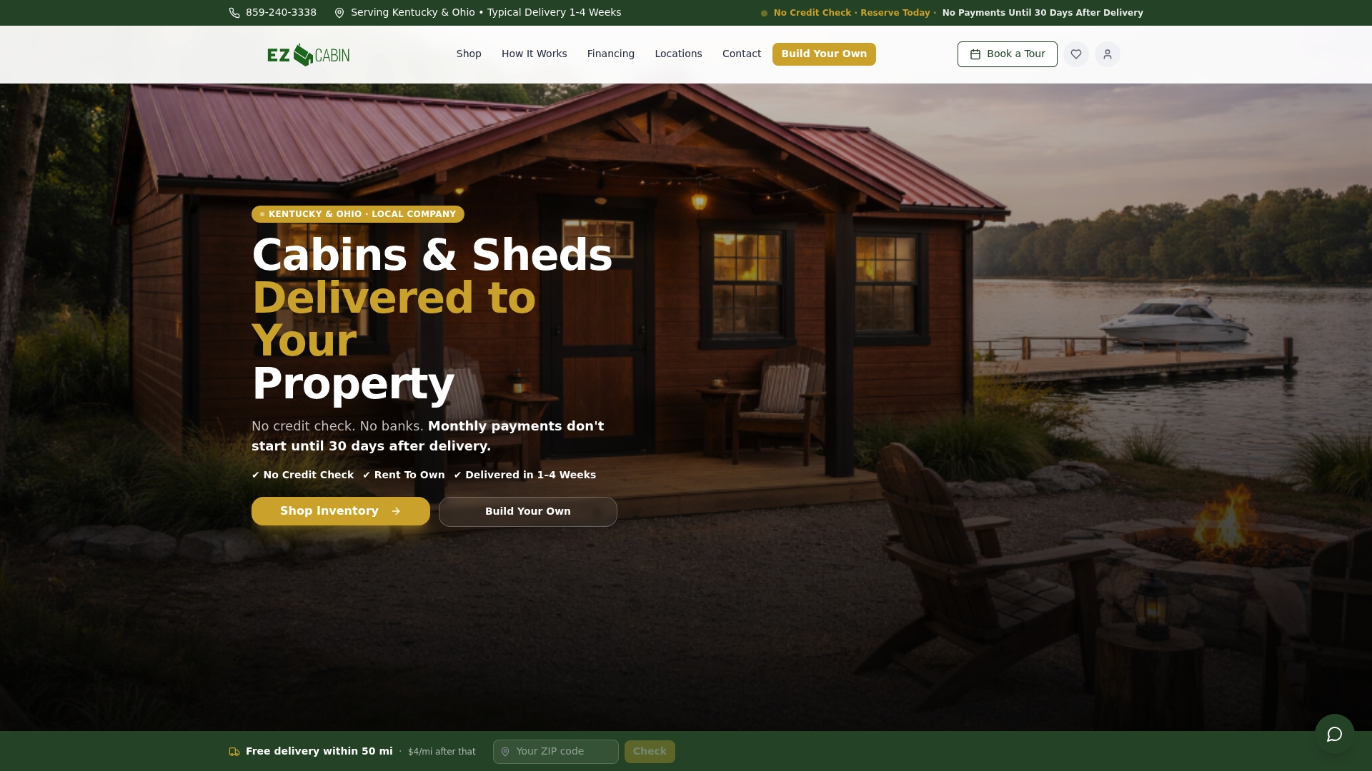 EZ Cabin combines a modern digital buying experience with physical retail touchpoints in London, KY and Somerset, KY. The company guarantees simplified financing options that remove credit checks and require only the first month’s payment to start ownership. That mix of transparent pricing, fast fulfillment, and real time customization makes EZ Cabin unmatched for local buyers who value speed, control, and predictable costs.