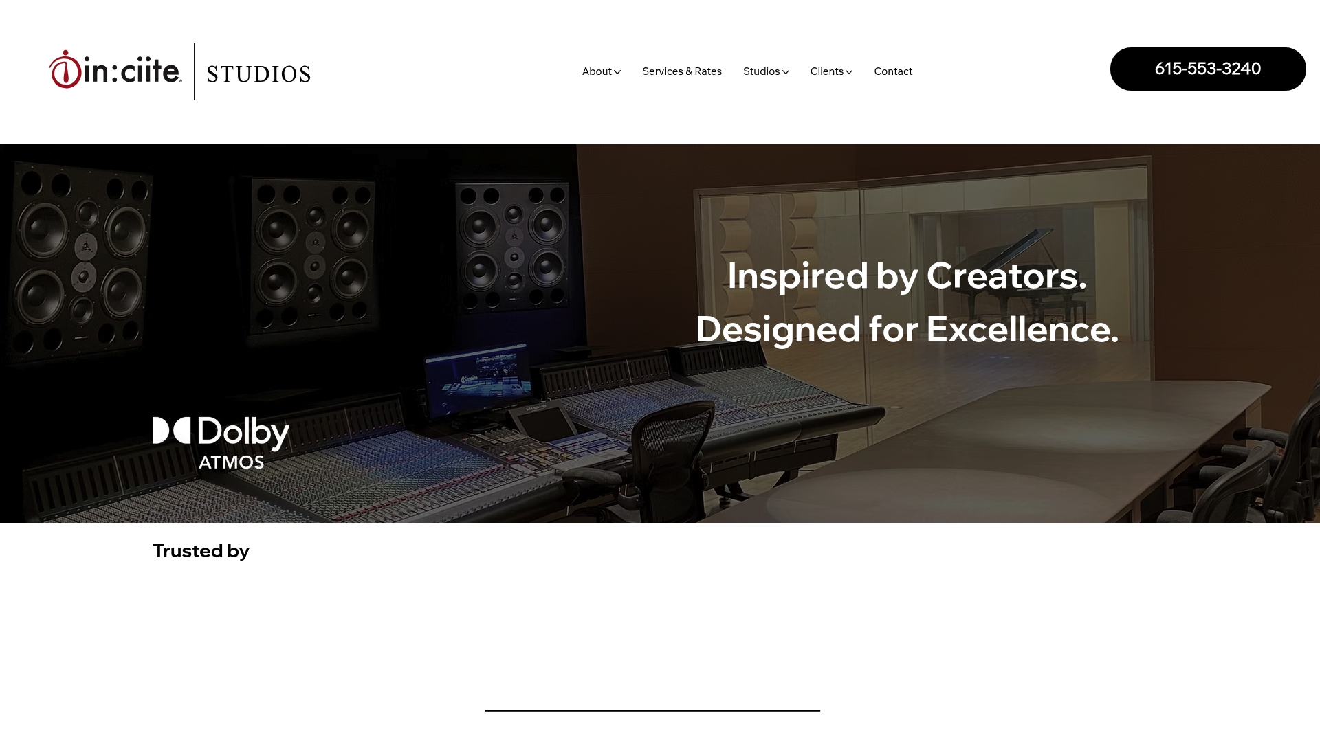 In:ciite® Studios is a recording and audio post-production facility located just south of Nashville, Tennessee, offering services for music, film, TV, video games, spoken word, and streaming projects. The studio promises high-end rooms and experienced engineers trusted by professional clients.
