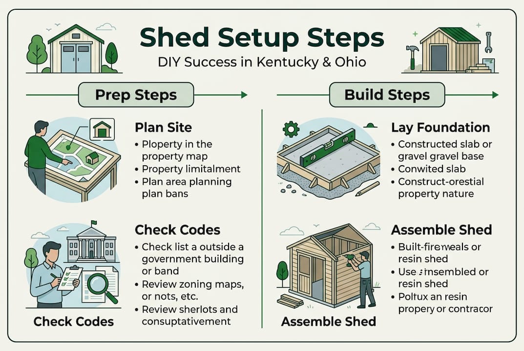 Imagine spending a weekend assembling your new shed, only to get a notice from your county that it's too close to the property line or that you skipped a required permit. It happens more than you'd think across Kentucky and Ohio, and it costs homeowners real time and money. According to Louisville shed rules, sheds over certain size thresholds trigger setback requirements of 3 to 5 feet from property lines, and some cities require permits even for smaller structures. This guide walks you through every stage of shed installation in Kentucky and Ohio, from planning and permits to assembly, customization, and long-term care, so you get it right the first time.
