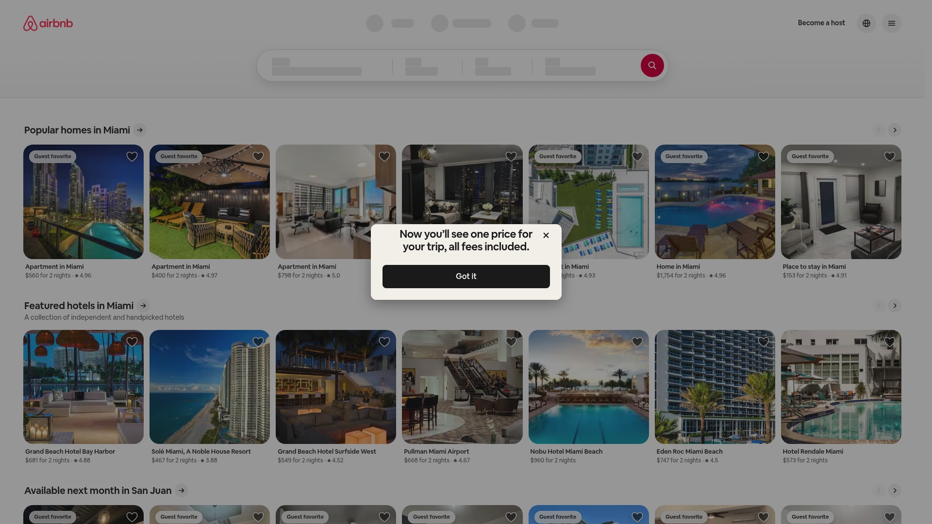 - Pricing details are not obvious because specific fees and guest costs are not shown on the homepage, requiring extra clicks.